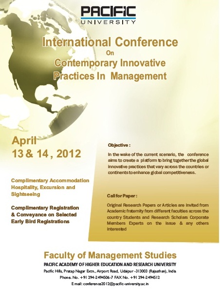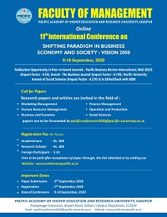 Faculty of Management Pacific Academy of Higher Education Research UniversityPacific Hills, Pratap Nagar Ext.,Airport Road, Debari,Udaipur-313024